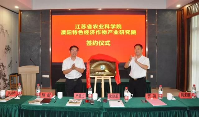 昨天上午,江苏省农业科学院溧阳特色经济作物产业研究院在曹山旅游度假区挂牌成立。江苏省农业科学院副院长沈建新、我市副市长曹俊出席活动并共同为研究院揭牌。